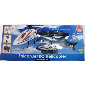 Protocol FalconJet RC helicopter is a marvel of maneuverability in flight. With its omni-directional 3 channel infrared remote control and co-axial auto-stabilizing rotors, the 7858-6 falconjet rc helicopter provides pinpoint accuracy and responsiveness for precise indoor and outdoor flight! Realistic details such as its flashing multi-colored LED light complete the experience. Protocol's 7858-6 falconjet rc helicopter is RC at its best ... roger that! Remote requires 6 AA batteries (not included) Helicopter charges directly through remote control transmitter.