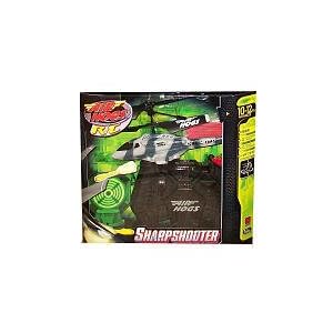 The sharpshooter is a good helicopter that does actually shoot. But those are about the only pro's I can give it. It has a short helicopter battery life. You can never hit with the gun on it. The gun can only be fired while flying. It does not have good landing gear. It is only two channel so it always moves forward. It can't do quick and tight turns and there are just 2 many problems with it. I would get a syma product instead.